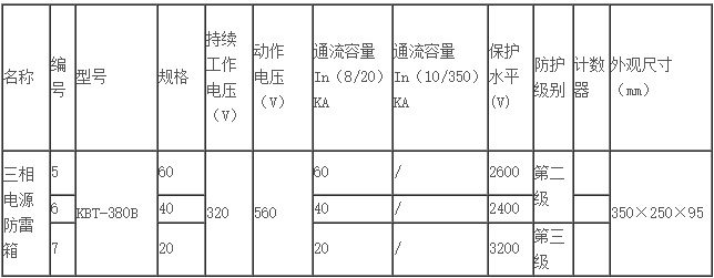 三相電源防雷箱(KBT-380B) 型號:KBT-380B 價格:面議 產品介紹: