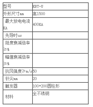 3、KBT-U限流避雷針具有對(duì)雷電提前先導(dǎo)作用,降低了雷電閃擊的能量;